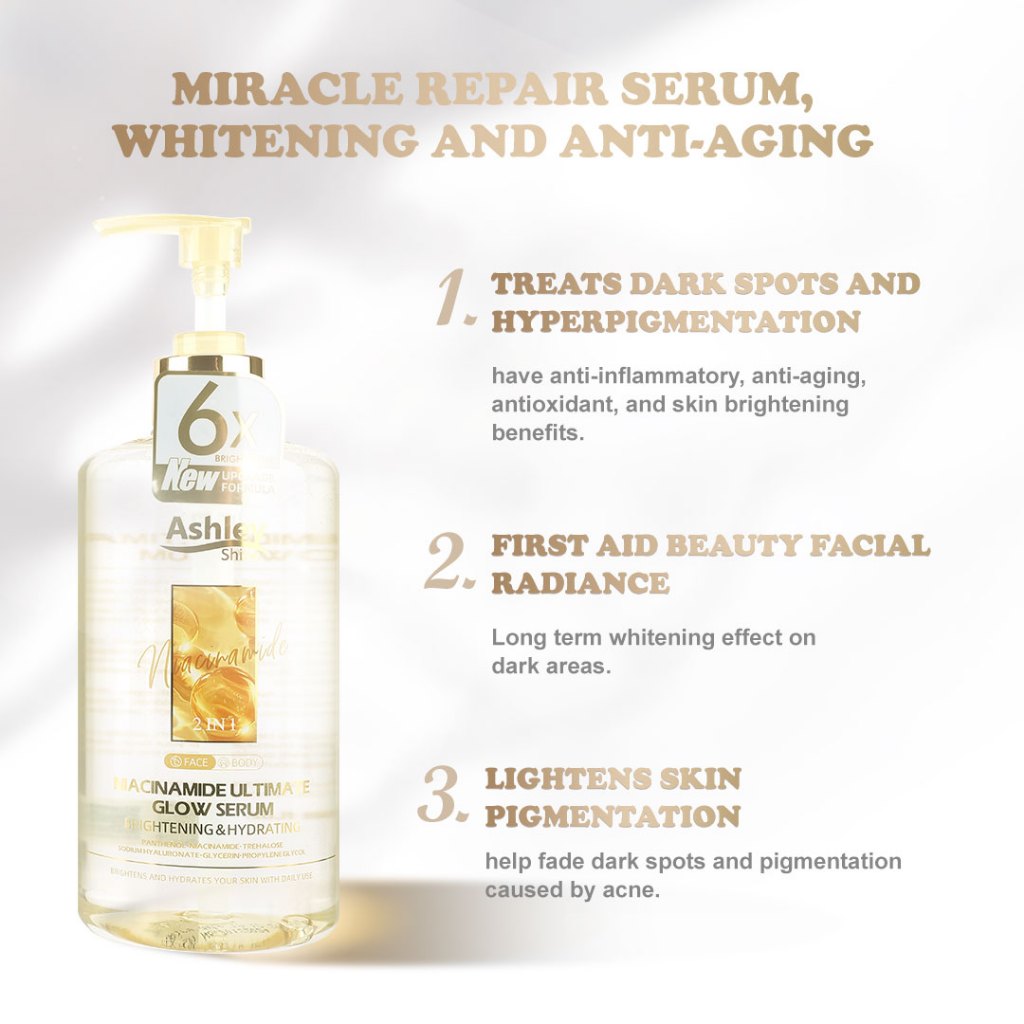 Ashley Shine NIACINAMIDE Pure Serum Face and Body Moisturizes 2 IN 1 Brighten Whitening Skin 500ml