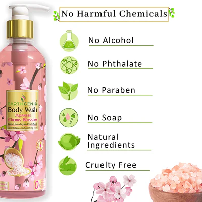 • Earthgenix Body Wash contains Cherry Blossom extracts that can lighten hyper-pigmentation & clarify uneven skin.