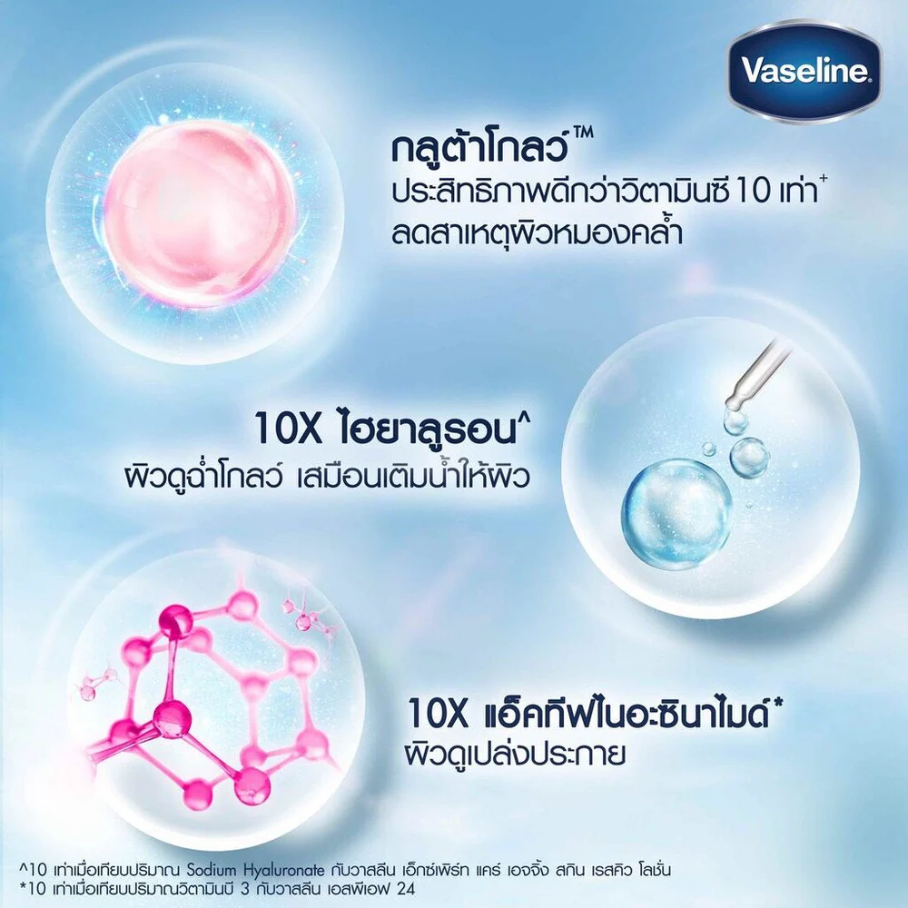 - Boosted with GlutaGlow technology, which is 10X more powerful than Vitamin C+. Vaseline also helps to reduce the causes of dull skin