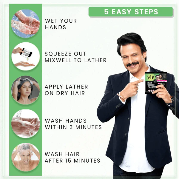 - Most convenient Hair Colour with a combination of Shampoo, Hair Color & Conditioner, gives Long Lasting hair colour that matches with your natural hair color
